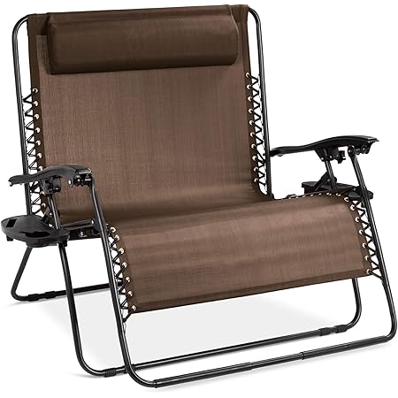 Amazon Com Best Choice Products 2 Person Double Wide Adjustable Folding Steel Mesh Zero Gravity Lounge Recliner Chair For Patio Lawn Balcony Backyard Beach Outdoor Sports W Cup Holders Brown Kitchen Dining