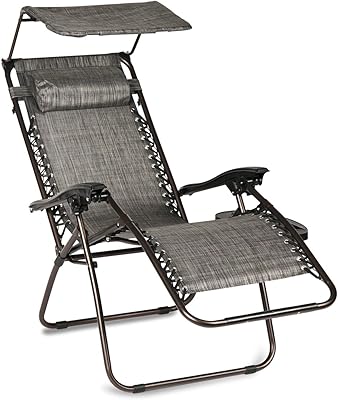 Amazon Com Best Choice Products Folding Zero Gravity Outdoor Recliner Patio Lounge Chair W Adjustable Canopy Shade Headrest Side Accessory Tray Textilene Mesh Black Garden Outdoor